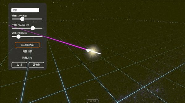 4、位置方向确定好后,然后可以调整球体的大小、自转速度以及质量等,参数设置完毕后点击发射即可