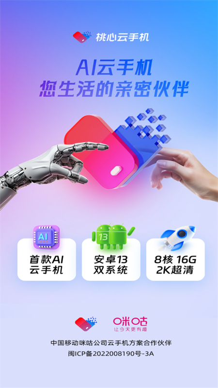 桃心云手机官方app下载安装最新版由厦门简算科技有限公司开发,是一款高性能云手机应用,具备八核心、16G运存、128G存储的强大配置,支持多开和离线挂机功能,能充分满足用户使用需求,同时软件实时保障用户隐私安全,让使用者更加安心,为有云手机使用需求的用户提供了可靠且功能丰富的选择。
