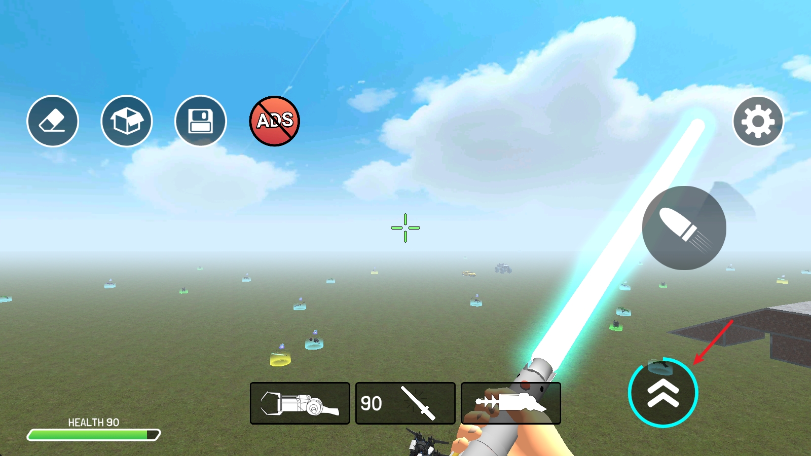 7、点击右下角的箭头,可以跳跃,长按即可消耗能量飞行。