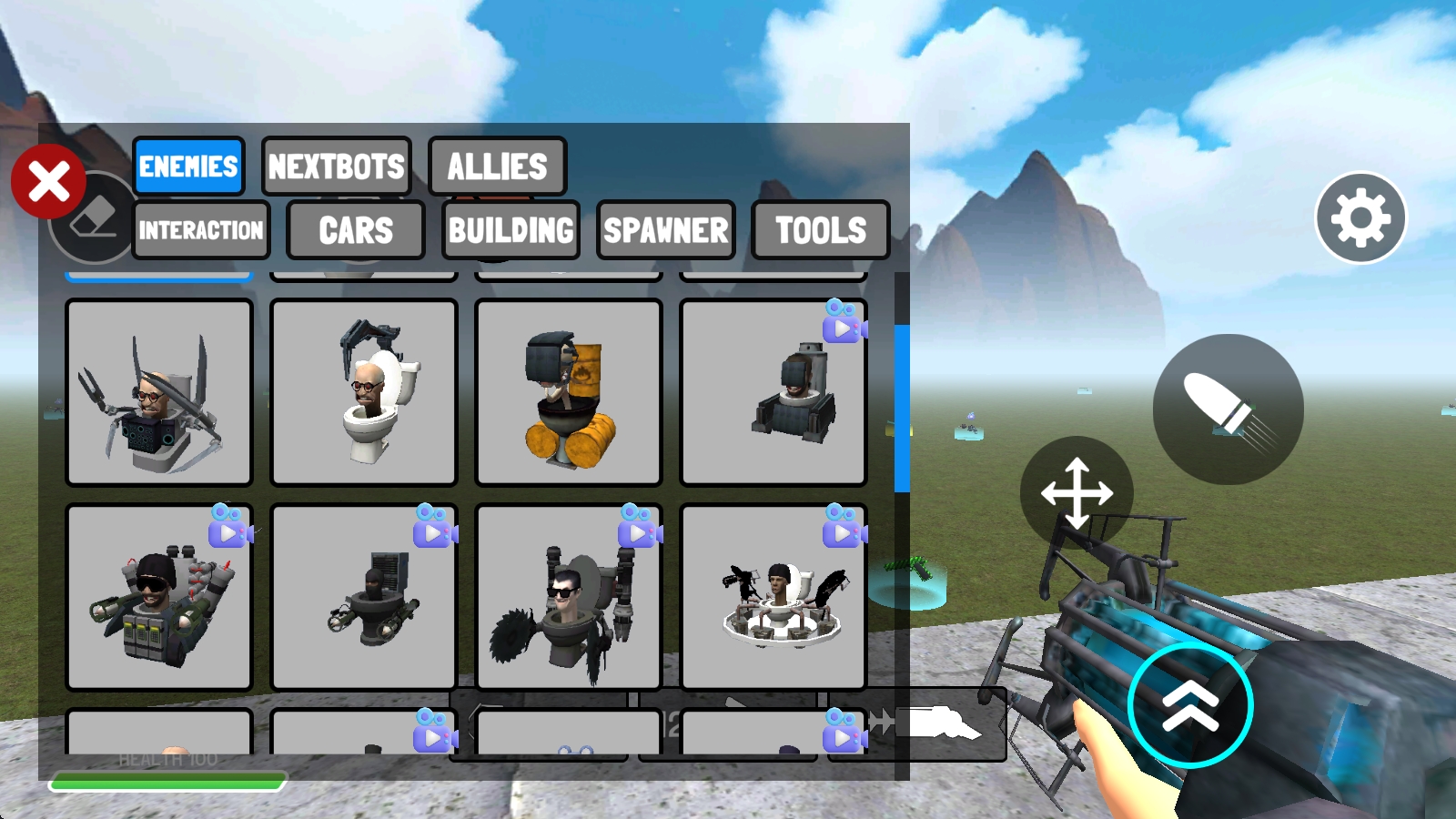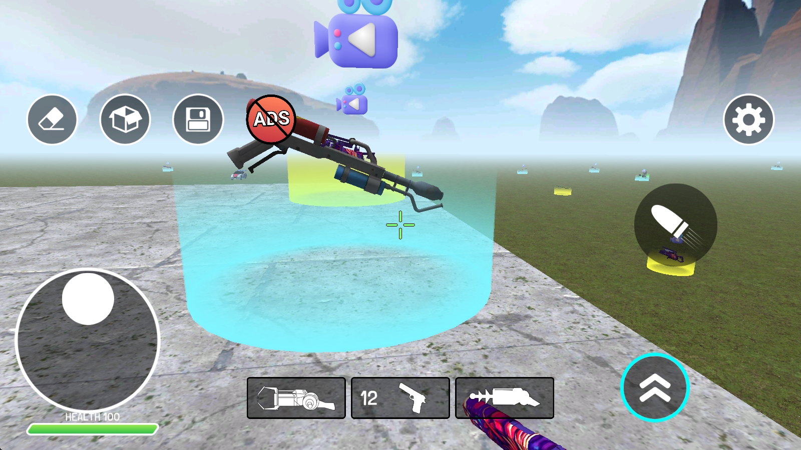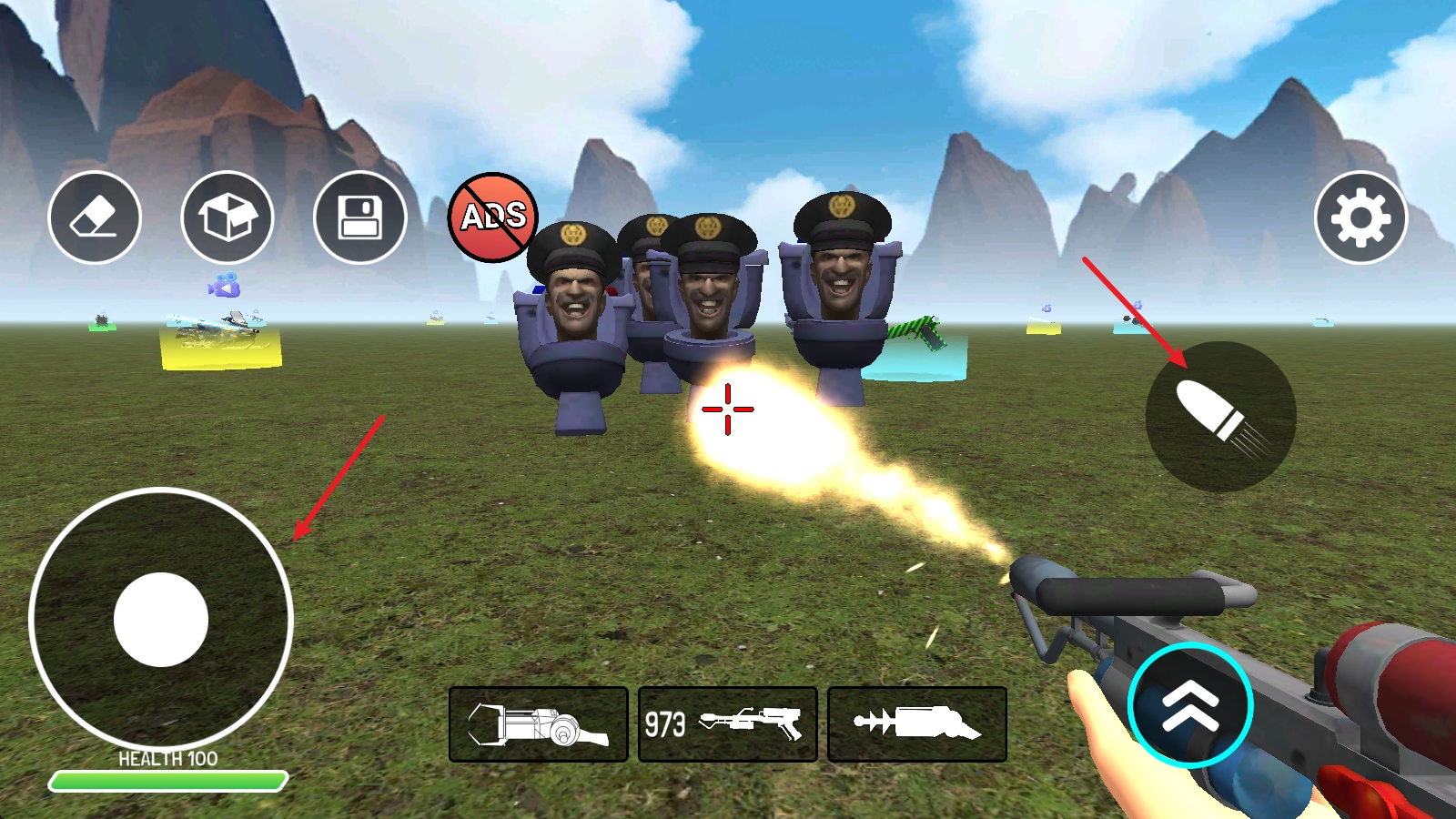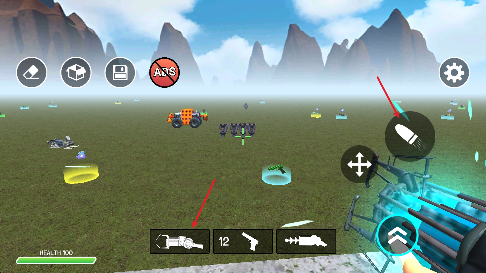 2、在游戏中,点击左下角第一个武器,然后发射,就能在场景中加入敌人。