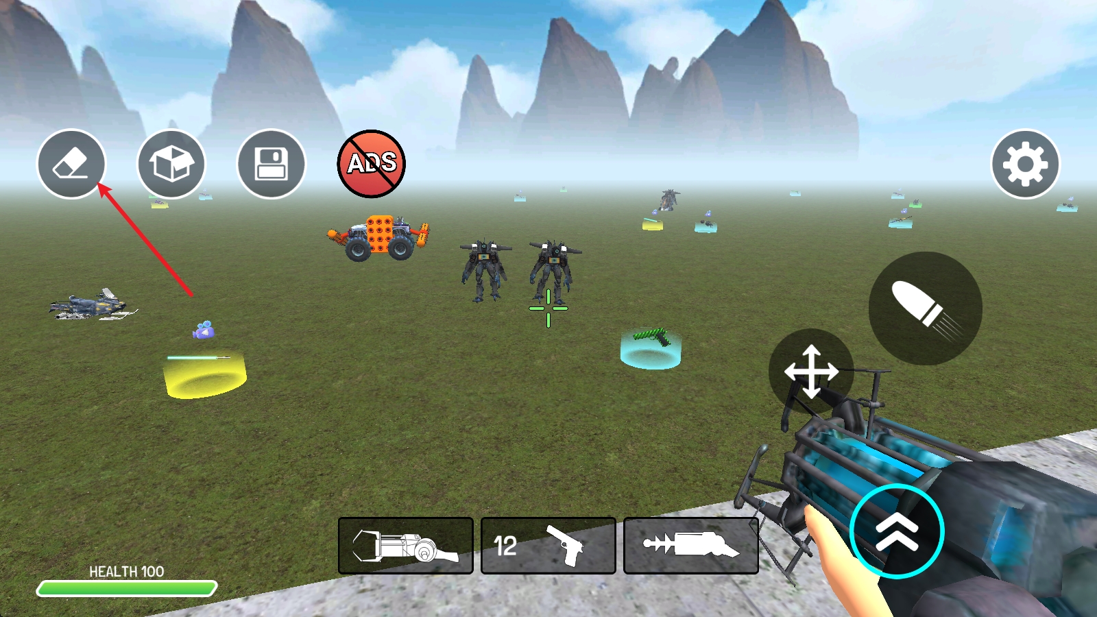 6、点击左上角的橡皮擦按钮,可以清除场景中所有的敌人。