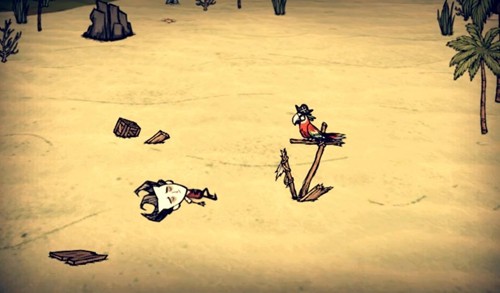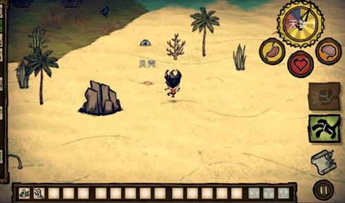 物资:草、树枝、燧石、石头、椰树、木箱、贝壳、矿石、沙堆、猪人、大嘴鸟、虎鲨巢穴、蜜蜂等
