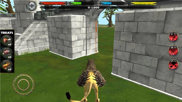 2、游戏中,左屏幕,可以控制狮鹫的移动的方向;