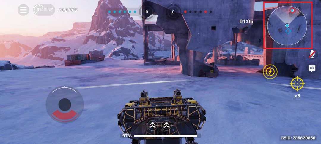 战场地图中会标注有基地的位置,分别用蓝色和红色的圆点标注队友和敌方战车的位置,黄色圆点则是自身的位置。