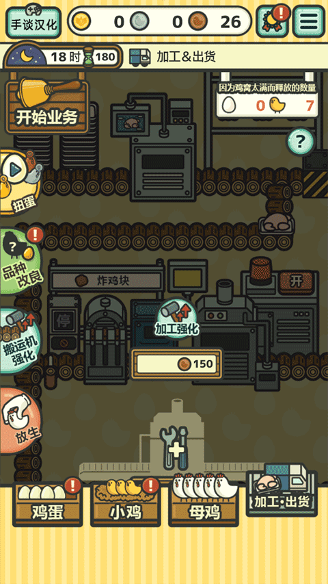 ps:小编带来的鸡蛋小鸡工厂中文版,是由手谈汉化组汉化而来,游戏内语言已支持中文显示,感兴趣的玩家不容错过