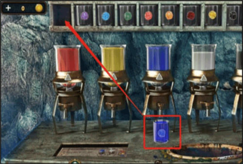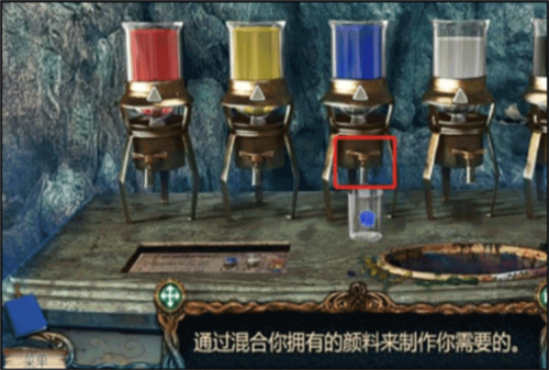 - 第一个烧杯是蓝色,因为蓝色本来就有了,所以只需要在蓝色的颜料瓶下面旋动两次按钮就可以了。