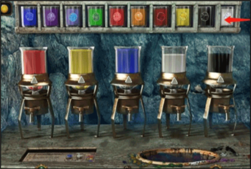 - 将上面的烧杯拖动到下面的颜料瓶下面,然后根据颜色旋转颜料瓶的按钮来配色。