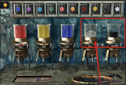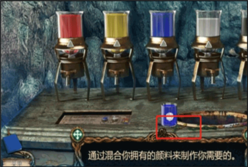 - 如果配色过程中配错色了,可以将烧杯往外拖,大概移到图1圈起来的位置,然后就能倒掉配错的颜料。