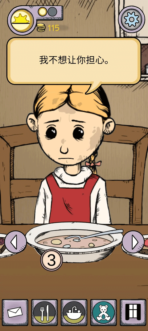 这时候需要玩家要保持耐心,准备好足够的食材和家务活,保证在孩子拒绝互动的时候有事情可以做来消耗行动机会,等到孩子完全拒绝和你交流的时候,孩子会开始透露出一些信息。