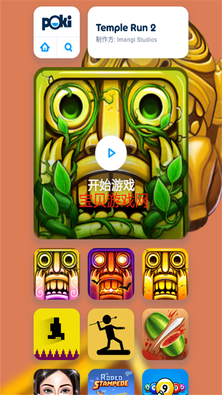poki小游戏平台专为现在的年轻用户打造的,不用下载到手机上就可以玩游戏,再也不用纠结自己的手机下载了一堆游戏资源和安装包了,在这里一个APP就可以畅玩超多好玩的游戏。