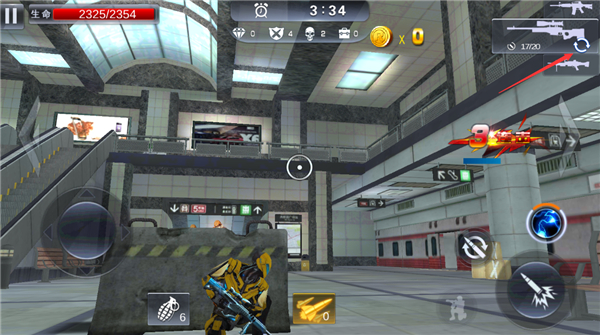 2、点击攻击键是瞄准,再点击一次攻击键即可发射子弹,打开瞄准镜移动左边的移动键控制上下左右方向