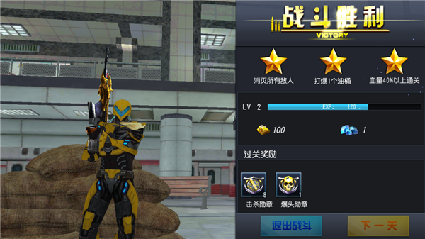 6、击败关卡中全部的敌人后即可通关获得奖励