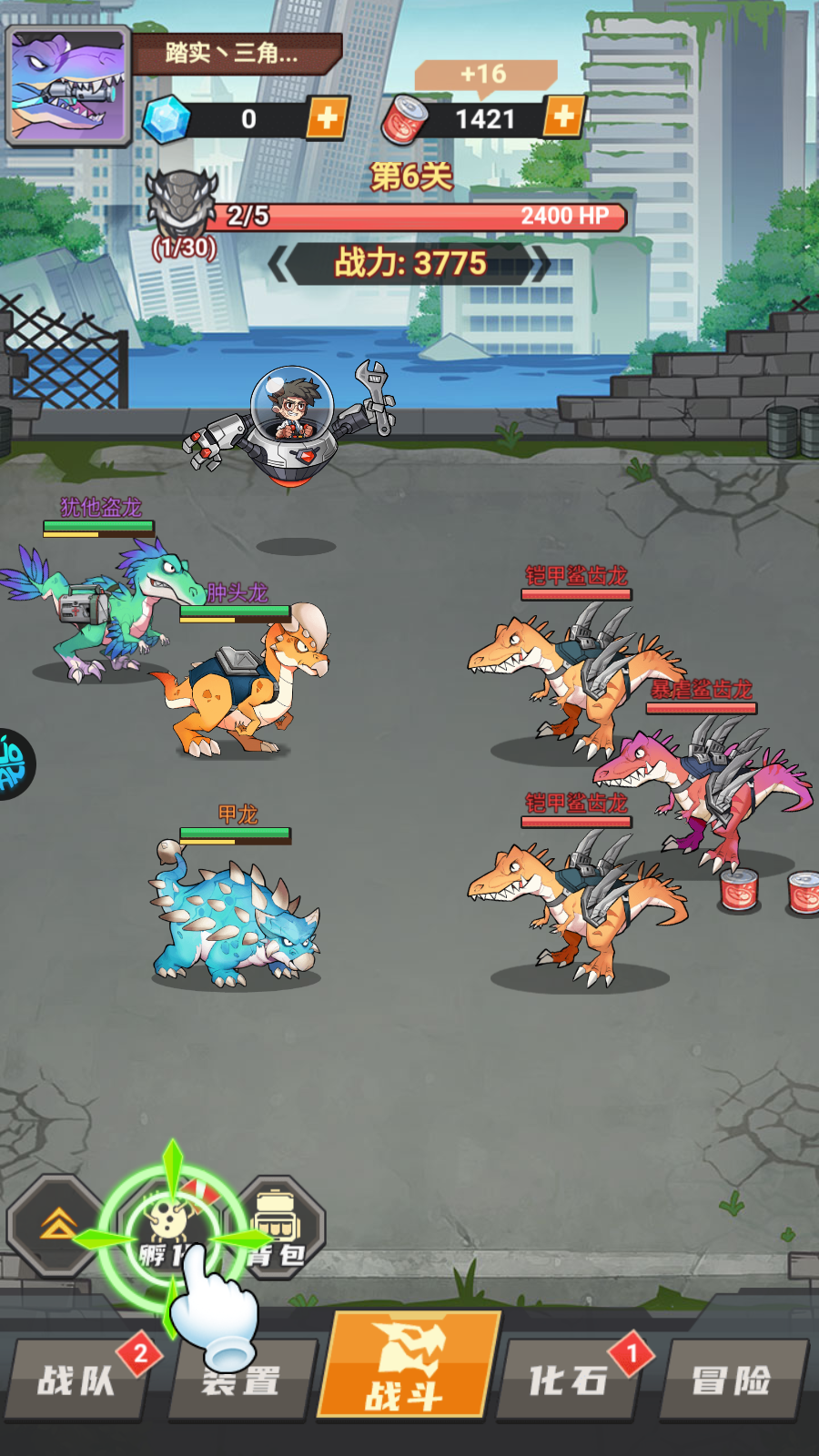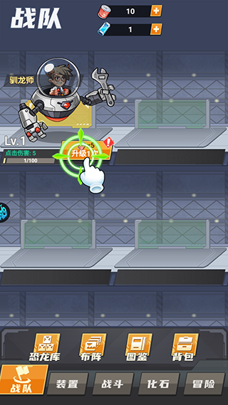 2、战队界面可以对主角或者你的恐龙进行升级;