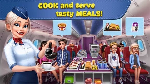 1、这款软件是一个模拟空中乘务员的游戏,所有飞机会飞到不同的地区,在每个落脚的地方你都能够掌握了新的烹饪技术来满足乘客。