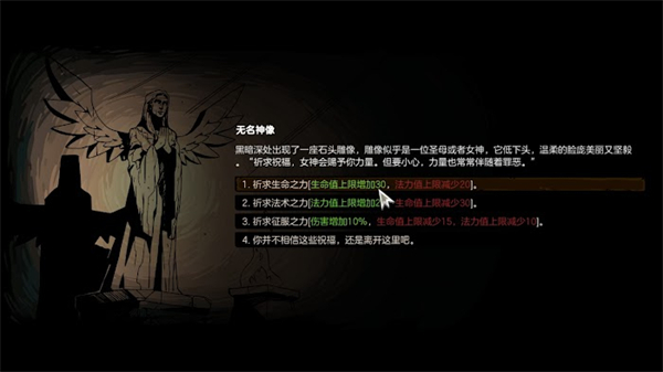上边有无名神像,可以选择增加buff。