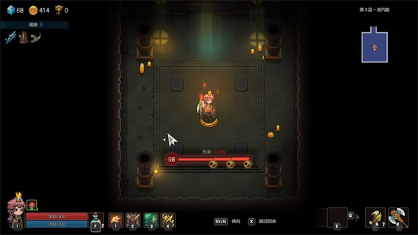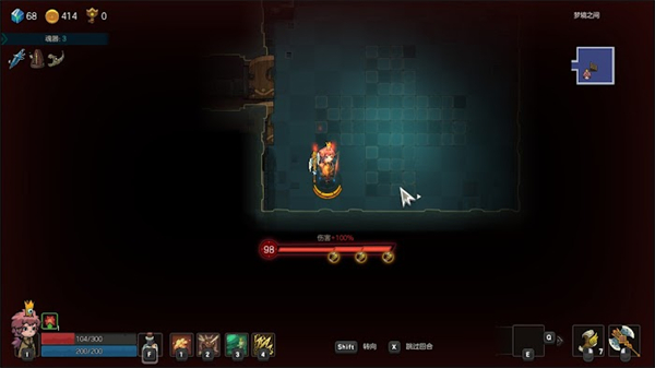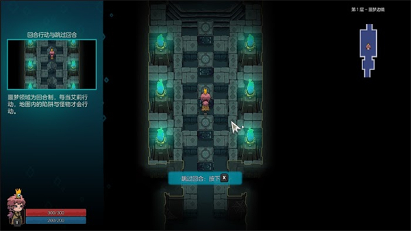 然后我们就可以行动了,走上前开一个宝箱,回合行动与跳过回合,在前方的砖头如果过不去就按X,这样就能过去了。