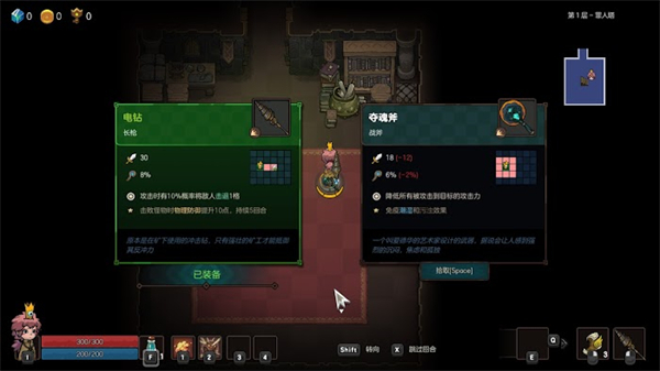 一直往前打败怪物,有个宝箱,打开获得斩击之刃,打开I可以查看角色信息。