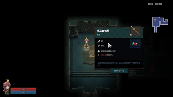 打开宝箱获得捍卫者长枪,按空白键就可以装备。