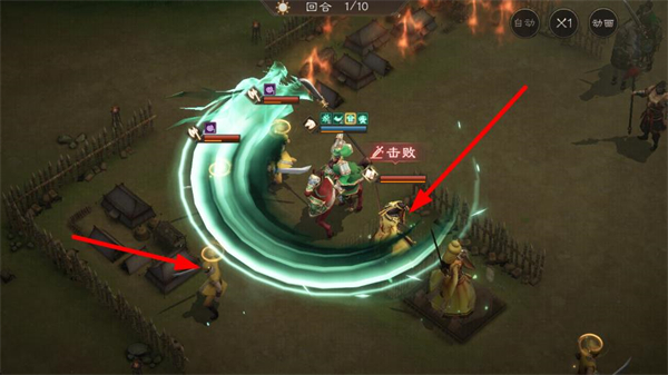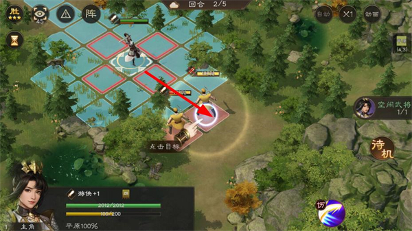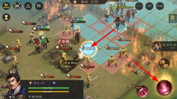 3、点击目标,操控武将对敌人发起攻击,在不同场景里利用地形和技能优势击败敌人。