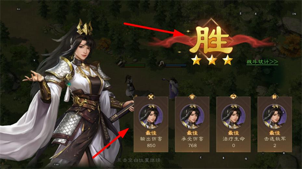 4、战斗胜利后会显示胜的结算界面,查看输出伤害等战斗数据,点击可继续游戏,开启新的战斗征程。