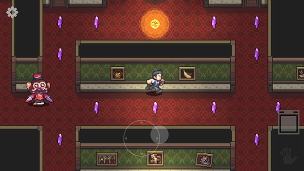 7、益智向右走到尽头乘坐电梯上二楼,收集所有散落的紫水晶,但是要注意会有猴子怪物追赶你,不止一只哦,你需要灵活的走位,抓住时机寻找藏身之处,躲避它们的追杀!