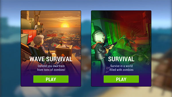 1、在本站下载安装好僵尸列车手机版正版后,打开进入,选择你想要玩的模式,左边是保护火车模式,右侧是生存建造模式。