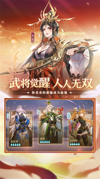 3、全新的武将出世,完备的英雄成长系统,羁绊英雄同时上阵会有额外的武力加成,自由创赛、国战积分赛等等丰富有趣的玩法等你来体验