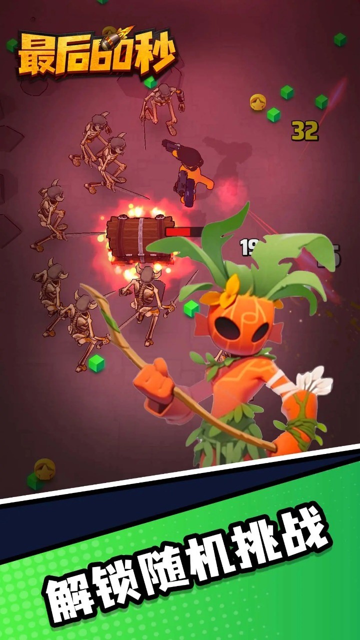凭借多种武器与技能的搭配,让你在成群的怪物中生存60秒,游戏提供了丰富的武器和技能组合,玩家可以根据自己的喜好和策略进行选择;