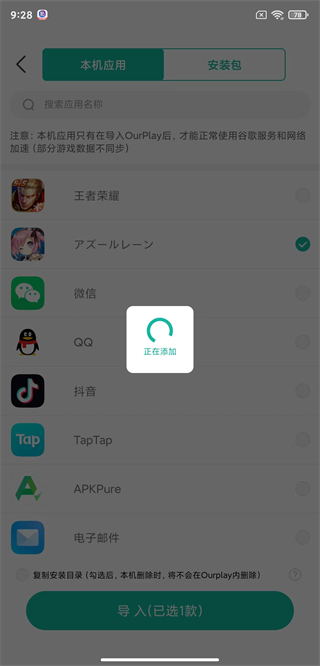 4、然后在此界面找到アズールレーン,点击导入,等待添加完成即可;