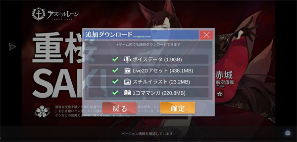 9、待这二者完全下载成功之后即可正常进入游戏,进入以下界面就证明已经可以通过ourplay***正常打开碧蓝航线日服了。