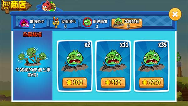 1、游戏的玩法很简单,将弹弓上的小鸟弹出去,砸到绿色的肥猪,将肥猪全部砸到就能过关。