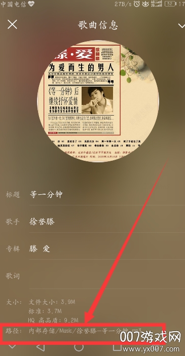 6、在歌曲信息中就可以看到歌曲的存放位置。