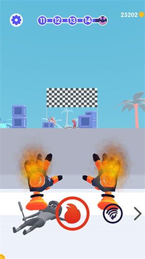 2、如下图所示:指尖控制移动,并点击发射火焰喷射器进行攻击