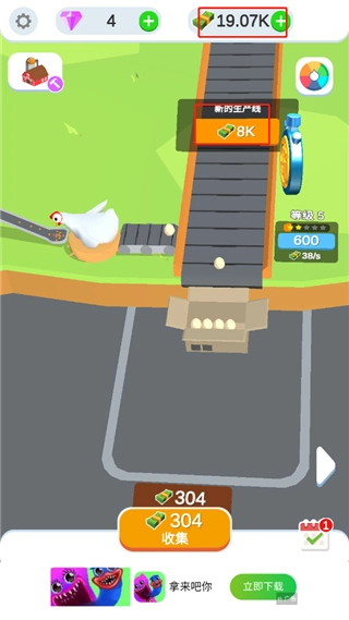 3.获得一只母鸡,这样就相当于获得一条生产线,母鸡产生的鸡蛋将会直接成为玩家的收益;
