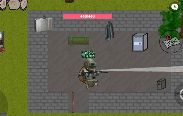 1、暗区突围像素版安装包采用横版移动操作,屏幕左边轮盘控制角色移动,右边攻击键可进行攻击。