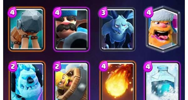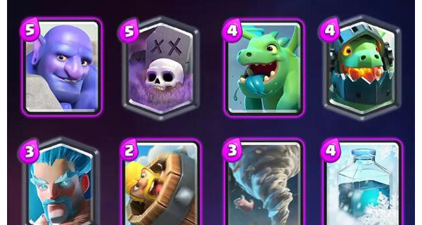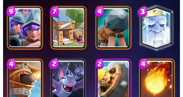 推荐原因:圣水消耗量少,有攻有防,如果对面选择的是高耗率卡牌的话,完全可以打他一个措手不及,并且卡牌容易集齐。缺点是,容易被女武神这种英雄压制,并且生命力低。