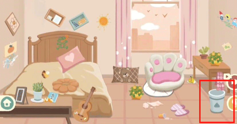 2、我们再把房间中的果皮、纸屑、水杯等垃圾丢出去。