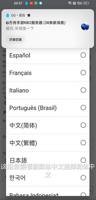 6、选择中文(简体)/中文(繁体)选项,一点即可自动调整语言。