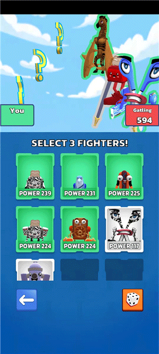 7、紧接着选择当前所融合的物种进行作战,只能选择三个,选择好后点击下方的fight按钮