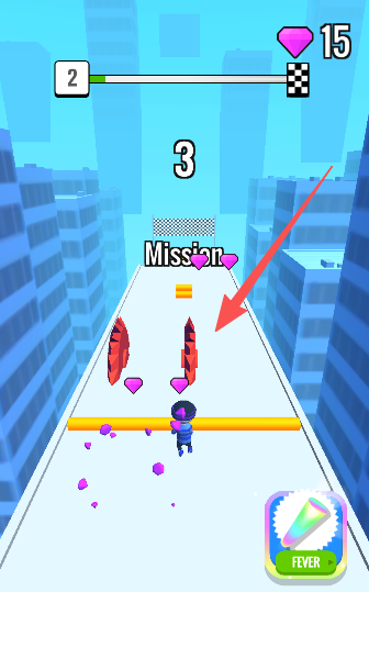 1、操控小人在屋顶上飞奔,躲开扎人的红尖刺,狂捡黄方块和粉爱心才是正经事。