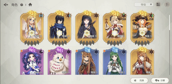 3、游戏中也有非常多不错的sr角色,这类角色的获取难度较低,个别角色的强度是要高于SSR的,因此在资源有限的情况下最好合理精心搭配。比如小拉芙就算是非常不错的SR角色,至少可以保证在前期推图是不过时的。