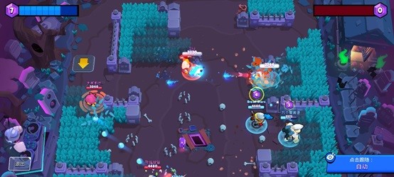 这款游戏采用垂直模式来展示战斗,类似于《皇室战争》,即玩家从神的视角进行游戏。与大多数MOBA游戏不同,这款游戏没有多种技能组合或进攻和防御提示。它简化了大量繁琐的操作。在垂直面板的左侧,有一个虚拟操纵杆,用于控制角色的移动和定位。玩家可以通过点击屏幕射击。当弹药击中敌人时,垂直板右侧的能量条会开始积累能量。一旦能量满了,头骨就会亮起来,在这个时候,最终的动作就可以释放了。
