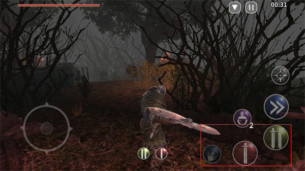 5、如下图,玩家可以点击选框中的三个按钮进行攻击;