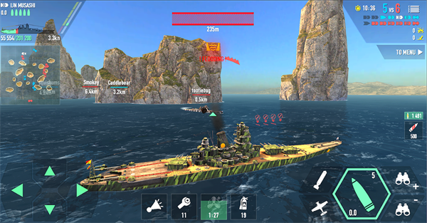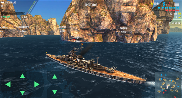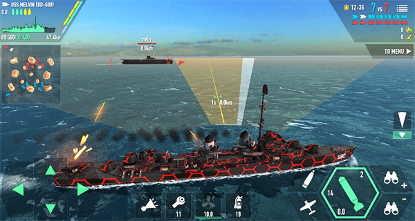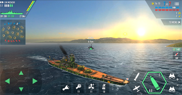 3、接到任务投身到战场,只需要控制战舰的航向还有武器切换就可以了