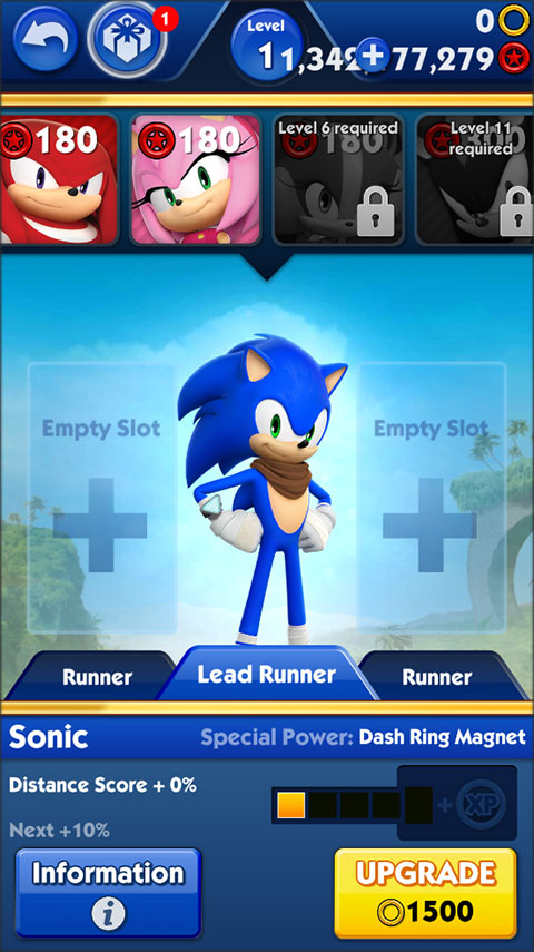 2、有许多索尼克IP角色可以选择来游玩,不同的跑酷冒险会给你不同的闯关体验。