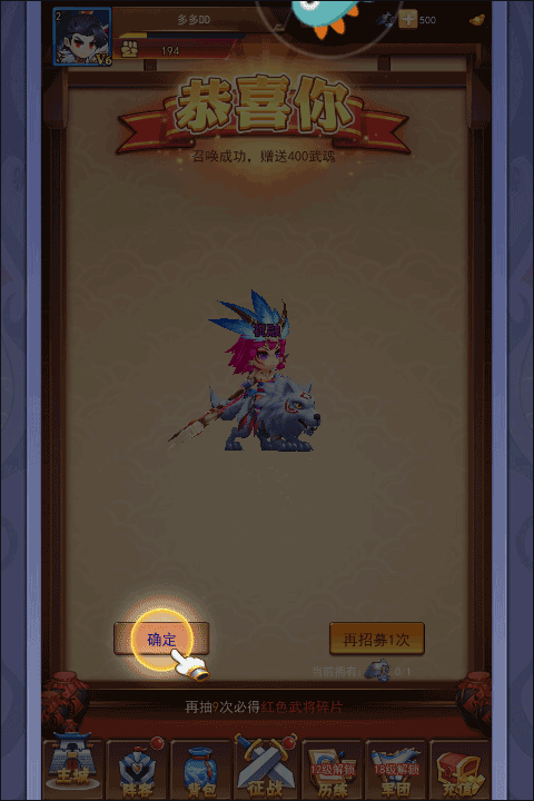 铜币*10W、招募令*5、进阶石*188、青铜宝箱*5