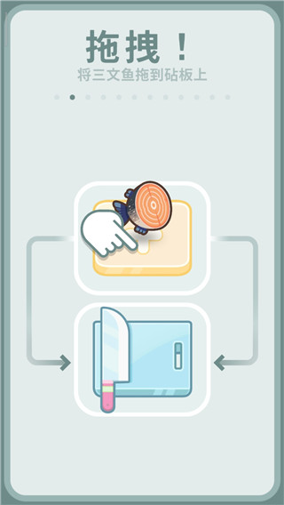 2、在屏幕上长按拖动,将取出的三文鱼拖拽到砧板上。