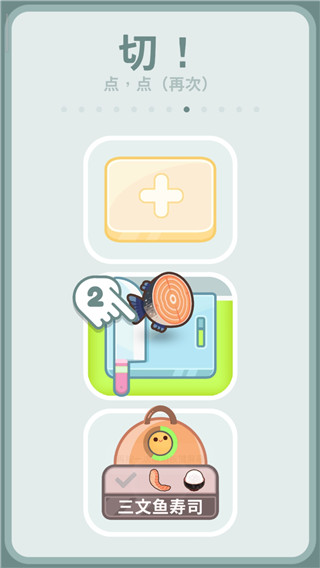 3、点击三文鱼,就可将食物切片处理。