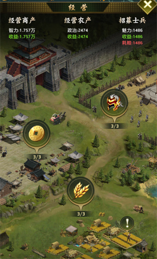 2、政务处理,以在府中点击师爷进行政务处理获得相应的奖励;