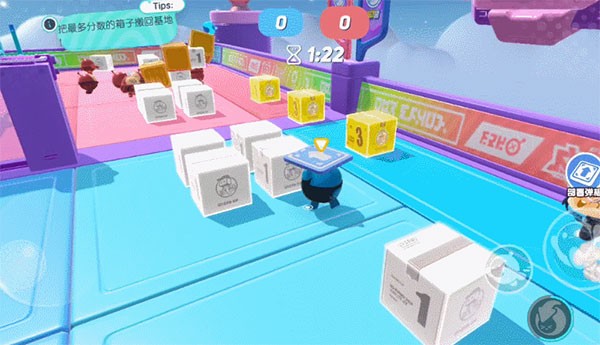 1. 巧用道具运箱子,干扰对手夺胜机比如在搬箱子这种积分赛中,场地会有一些道具可以让我们进行高段跳跃,为了胜利,这种时候我们要快速布置道具,让自己和队友都能快速搬运方块得分。
